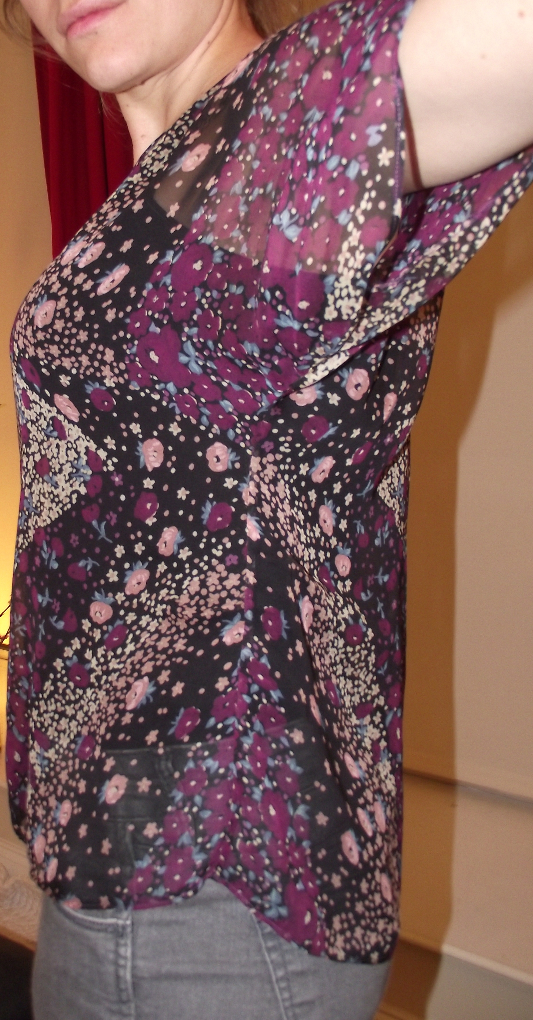 I had this silk chiffon I bought on sale at Fabric Mart (visiting that site is dangerous; I’d advise against it). It had Betsy Johnson printed on the selvage, for what that’s worth.