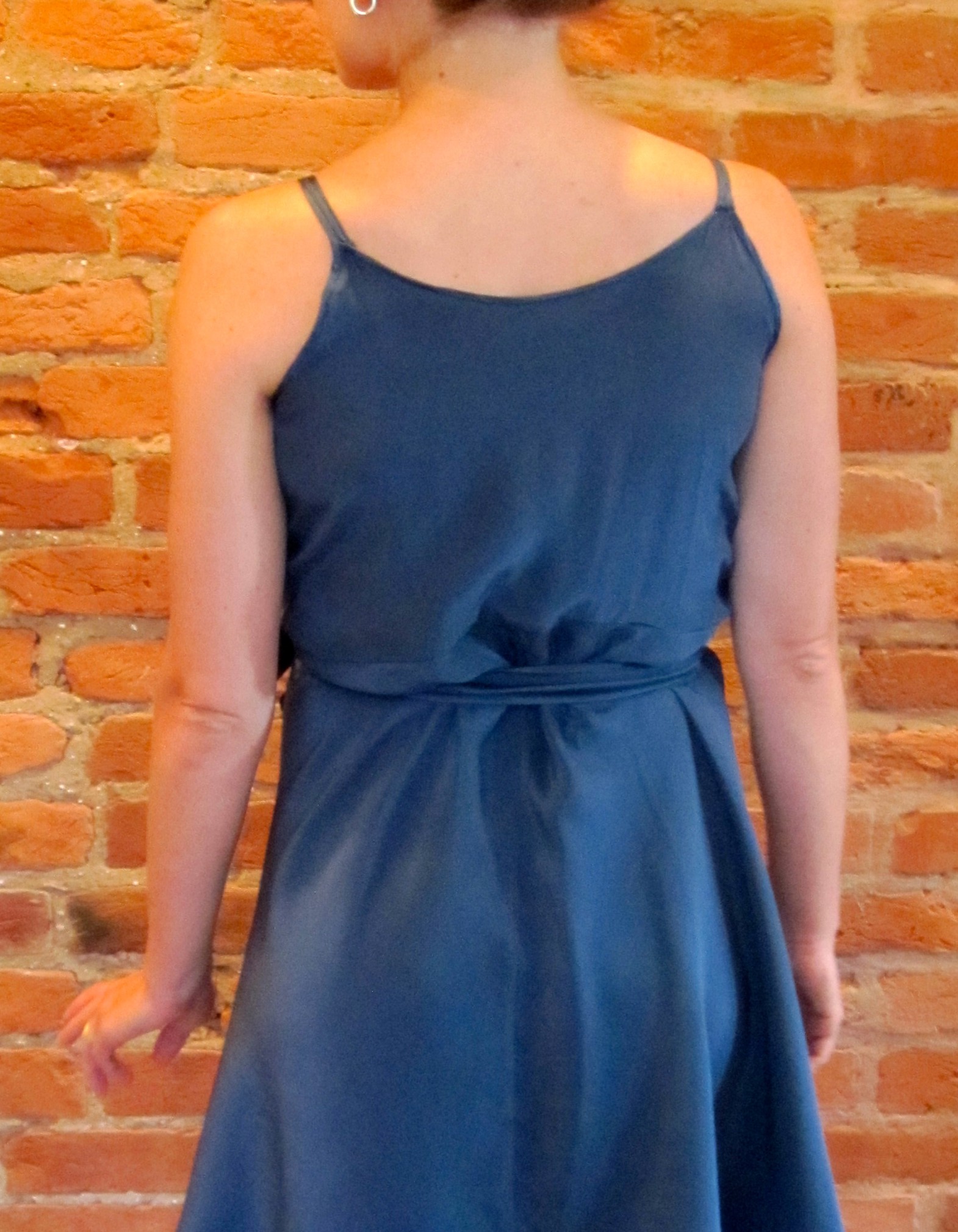 There’s still something a bit weird with the back bodice — the seam with the skirt is definitely higher than waist level and seems higher than it should be. See it above the tie?