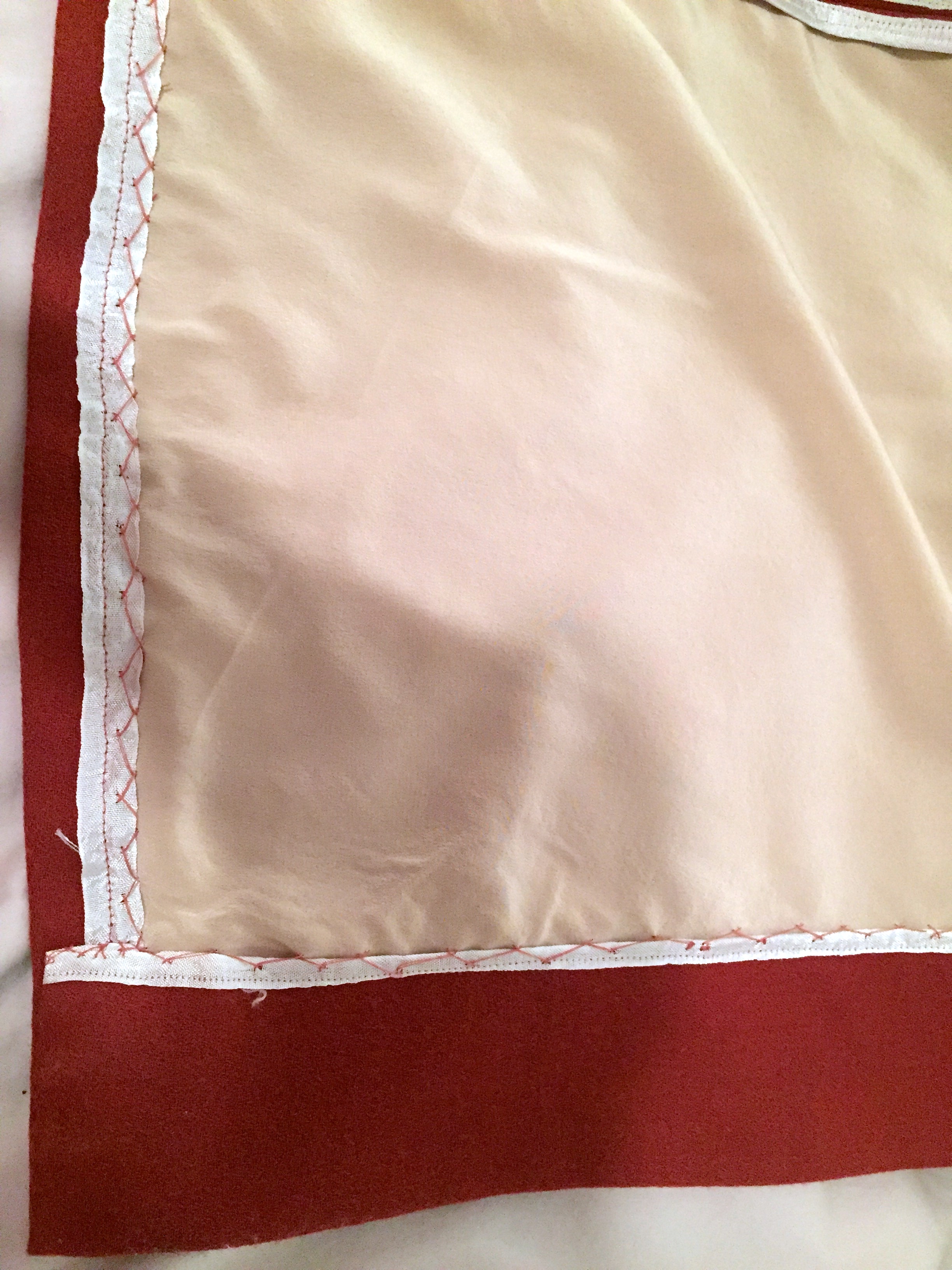 But I was already most of the way through  attaching my facing to the underlining and doing up the hem. So the facing is stitched to the underlining on the other side like this