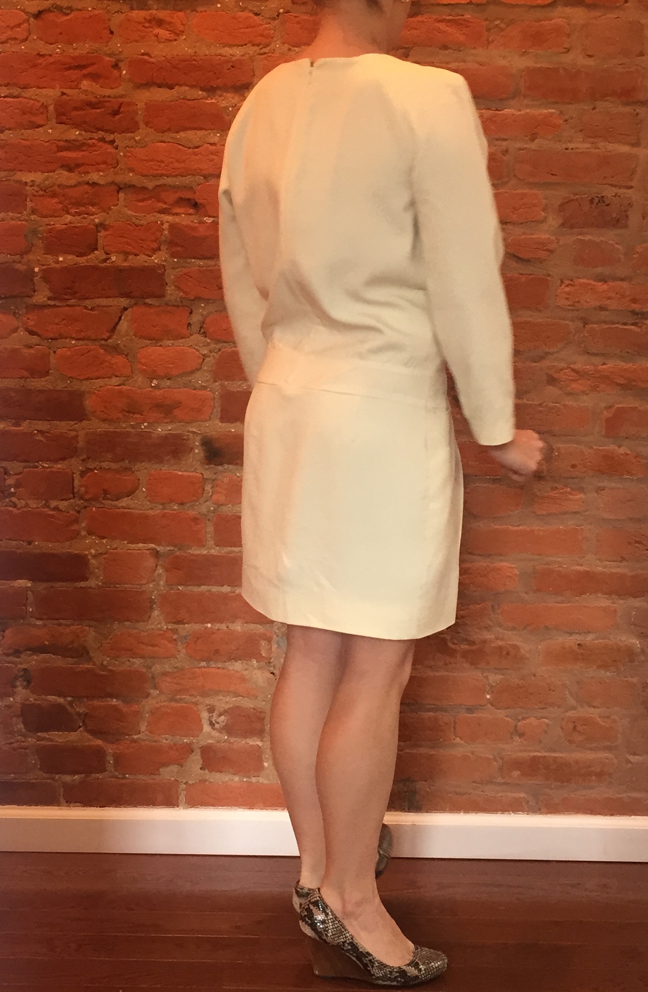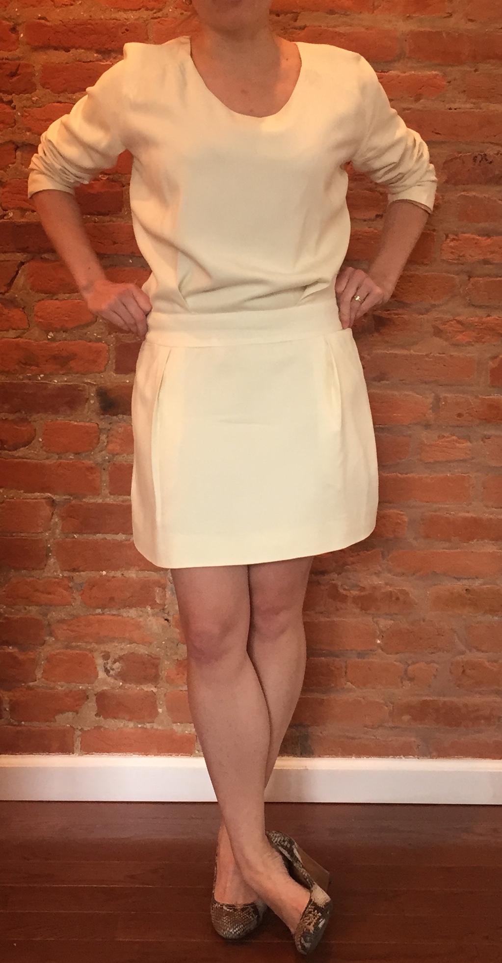 I did add the removed bodice length to the bottom of the skirt– this was intended for work, after all — but I ended up taking it all out. The billowy top balances out the small skirt okay.