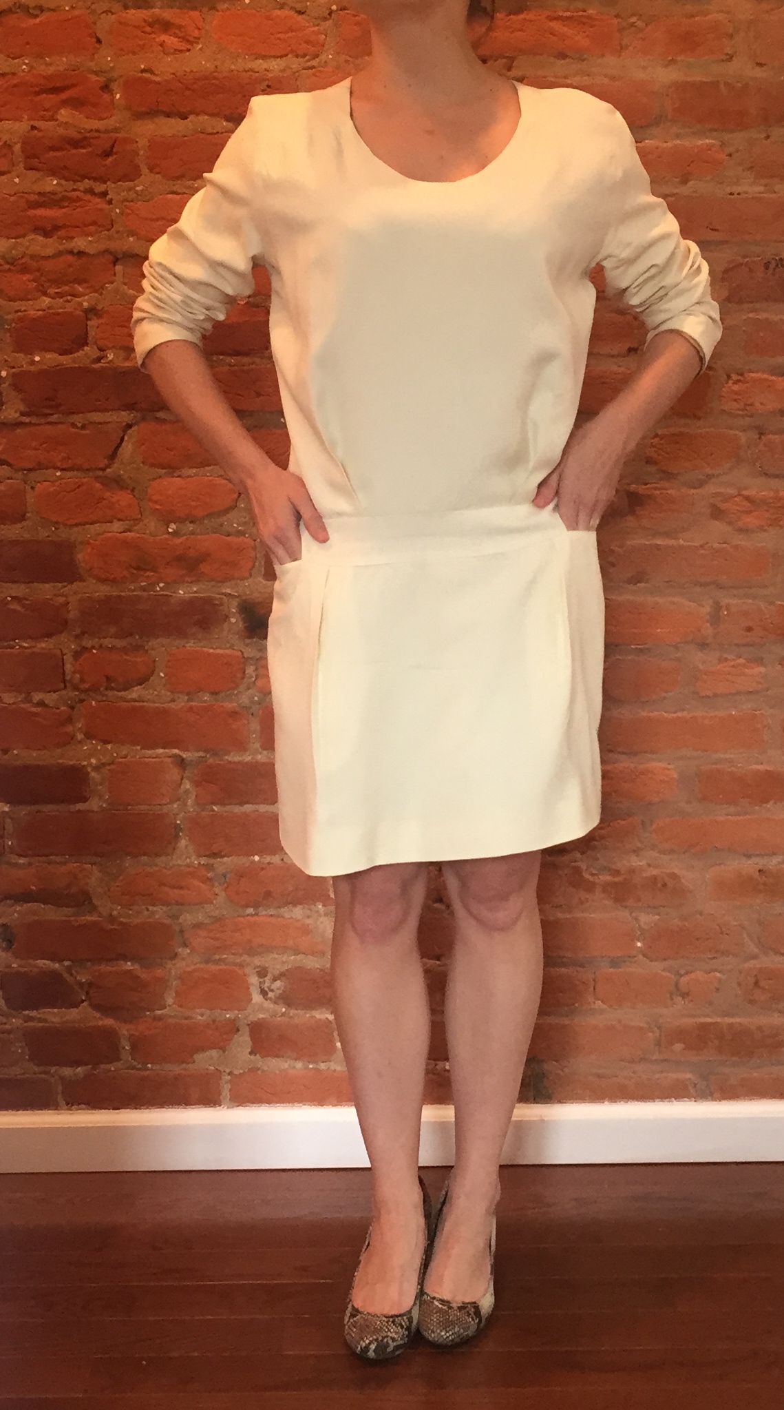 Because this is a raglan sleeve dress it’s supefast to put together, which is a big plus. My French is no good, but I have enough vocabulary for and the line drawings were good enough that I muddled through without too much trouble. The pocket part was a bit awkward, but I did a practice run on the muslin and things went fine. I think this would be a super fast and fun make if you had a serger and weren’t scared about raw edges in your dresses.