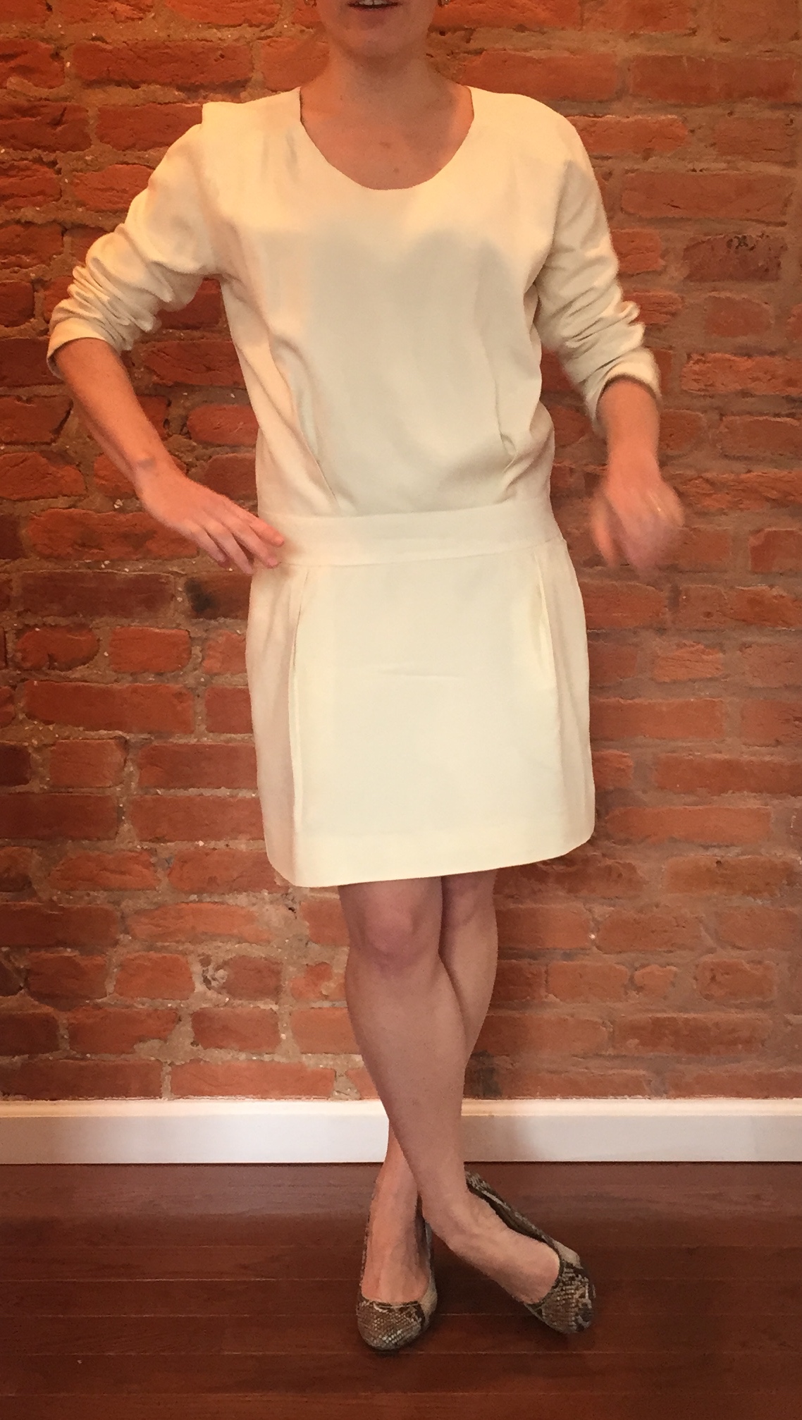 But because I am a dunce, I forgot to fold the fabric in a way the would ensure the pleat remained in the same place. As a result the skirt and bodice pleats don’t align on my finished dress the way they do in the pattern line drawing. Eh. I don’t beat myself up too badly about that.