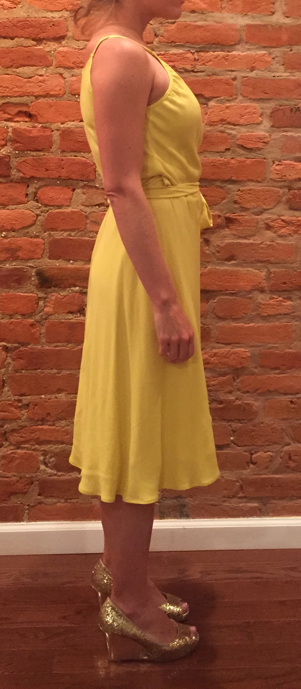 :: I hemmed the dress by 2″. Last year, that made the skirt too short, but this is evidently a study in fabric weight and bias growth, because the length is great here. The skirt was pinned to my dress form for about a week and seems to have grown a decent amount.