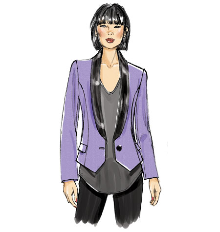 It’s Vogue 8958, a tuxedo jacket in two variations of tuxedo: shawl collar and, I dunno, bib collar?