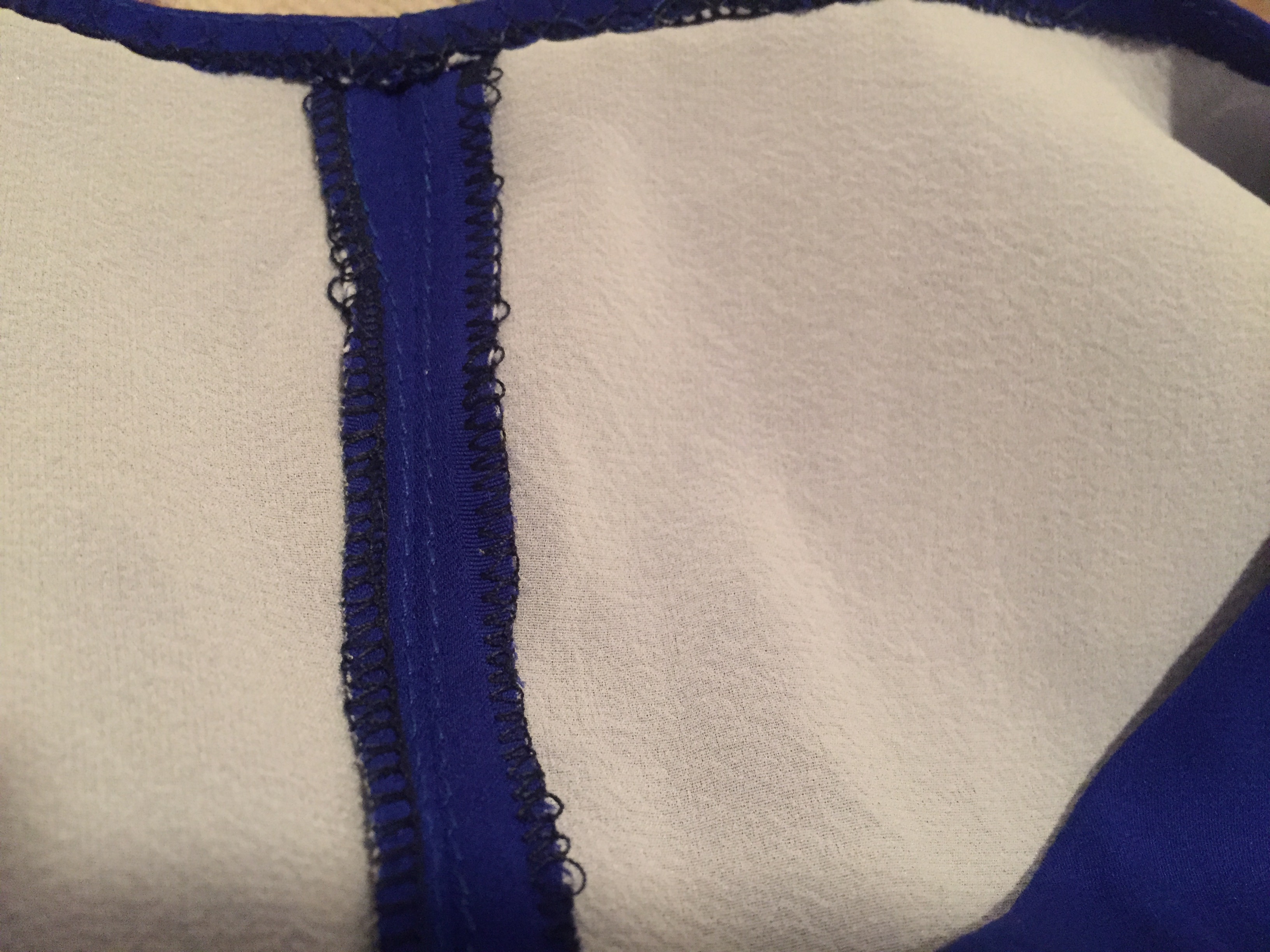 :: I then serged all the edges, except for the hem edge. Assembled you can make out the serging and the stitching line.