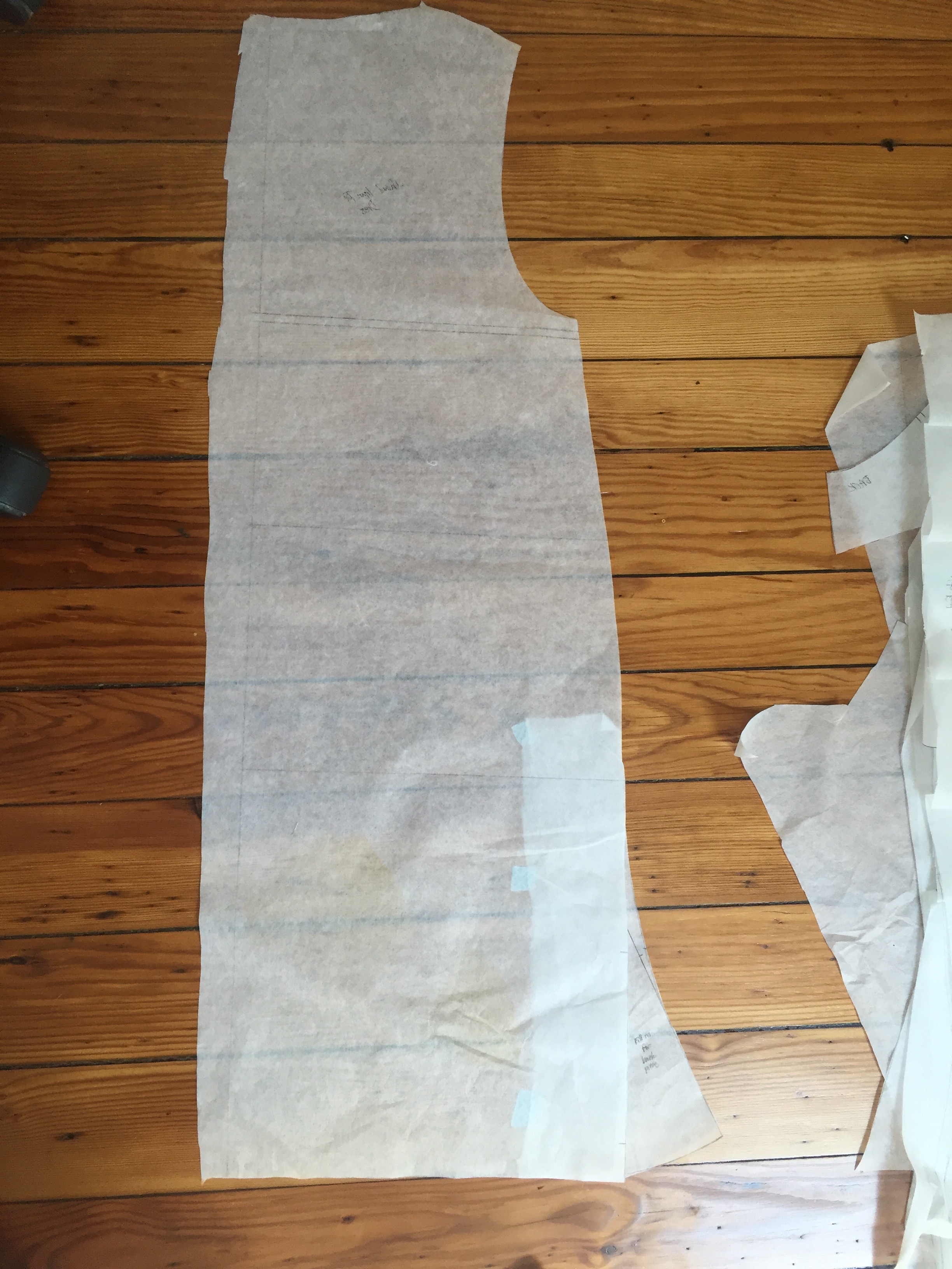 I was really nervous it wouldn’t work for a woven pattern, but it totally did. In this photo the red seam line is after full bust adjustment, with original seam line drawn on for context. Pretty interesting.
