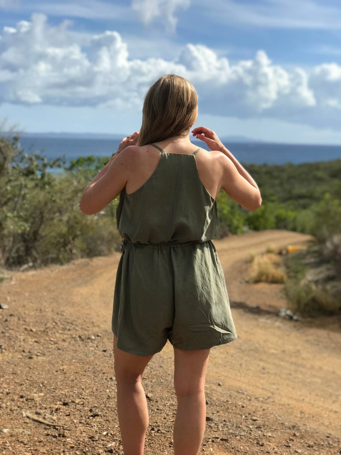 it’s super cute and a perfect thing to wear on vacation. I’m just finishing a jumpsuit and as I recall from the first time I wore then you kind of roll the top part down so the whole thing doesn’t end up on the floor 🙂